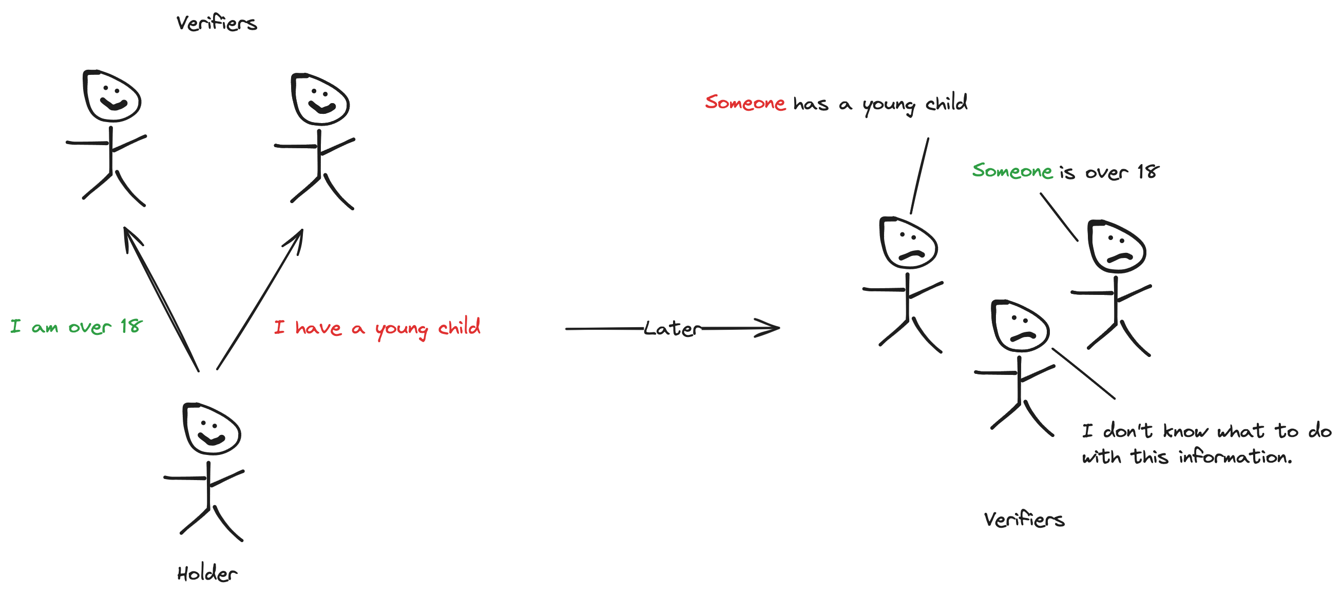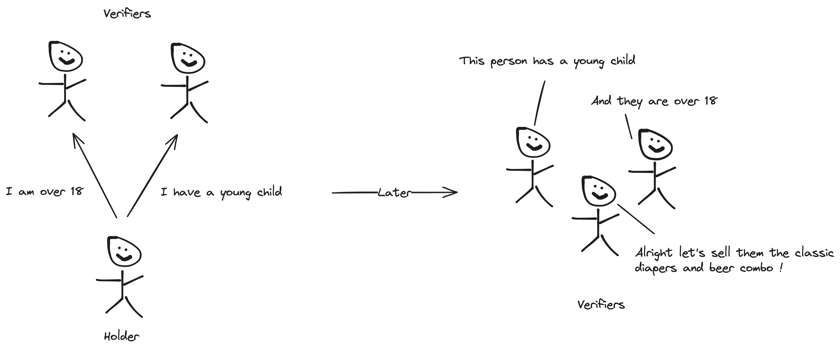 The basic premise is that holders can prove information about themselves without the verifiers having to directly contact the issuer of the informations.